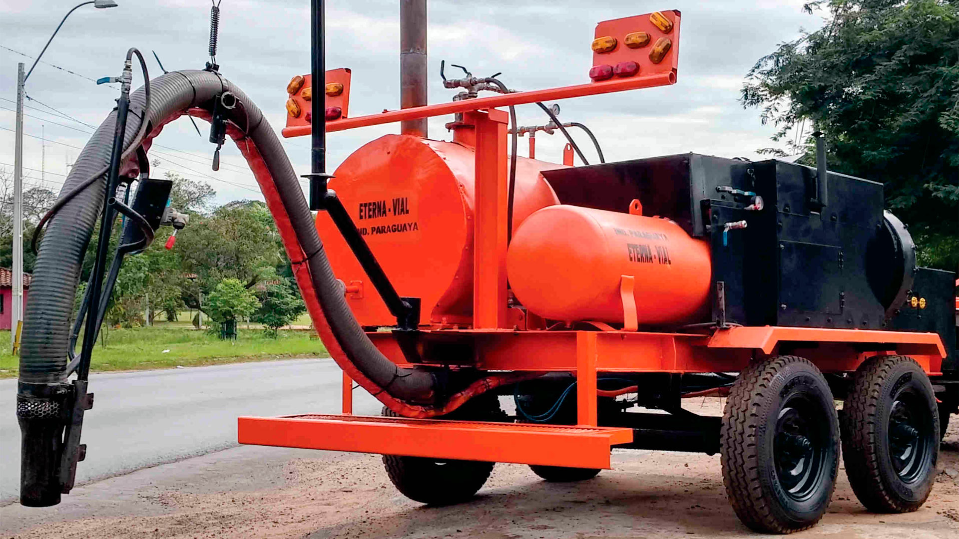 Regadores de asfalto, vibrocompactador de tiro, cascarón pata de cabra, tanques para asfalto y fueloil, plantas asfálticas, barredoras, transportadoras y acoplados.